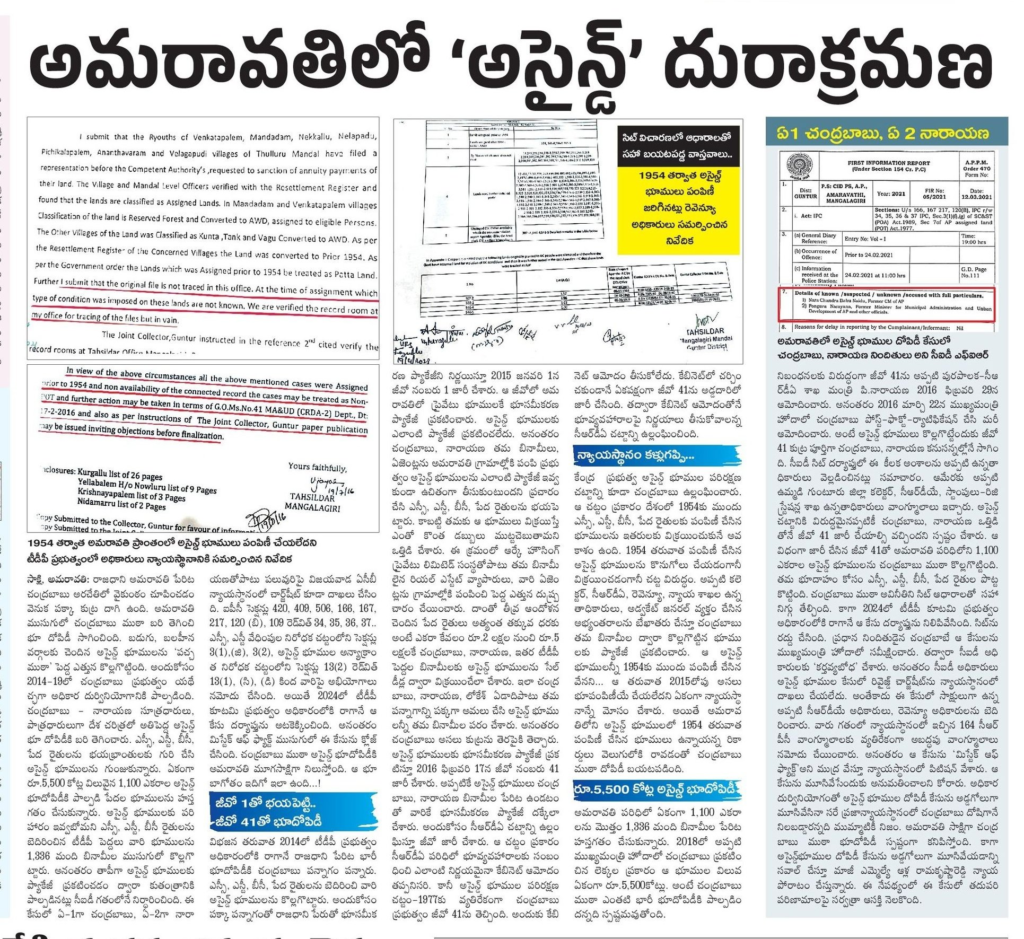 అమరావతిలో అస్సైన్డ్ భూముల వ్యవహారం సాధారణ సమస్యగా కనిపించదు. వేల కోట్ల విలువైన భూములు, బలహీన వర్గాలపై ఒత్తిడి, రాజకీయ నాయకుల పేర్లు—all these raise serious questions.