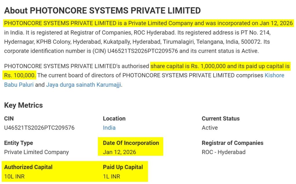 | Photoncore వంటి సంస్థలు క్వాంటమ్ తయారీకి సిద్ధం | Photoncore రిజిస్ట్రేషన్ జనవరి 2026, కార్యకలాపాలు – ఎలక్ట్రానిక్ హోల్సేల్ |