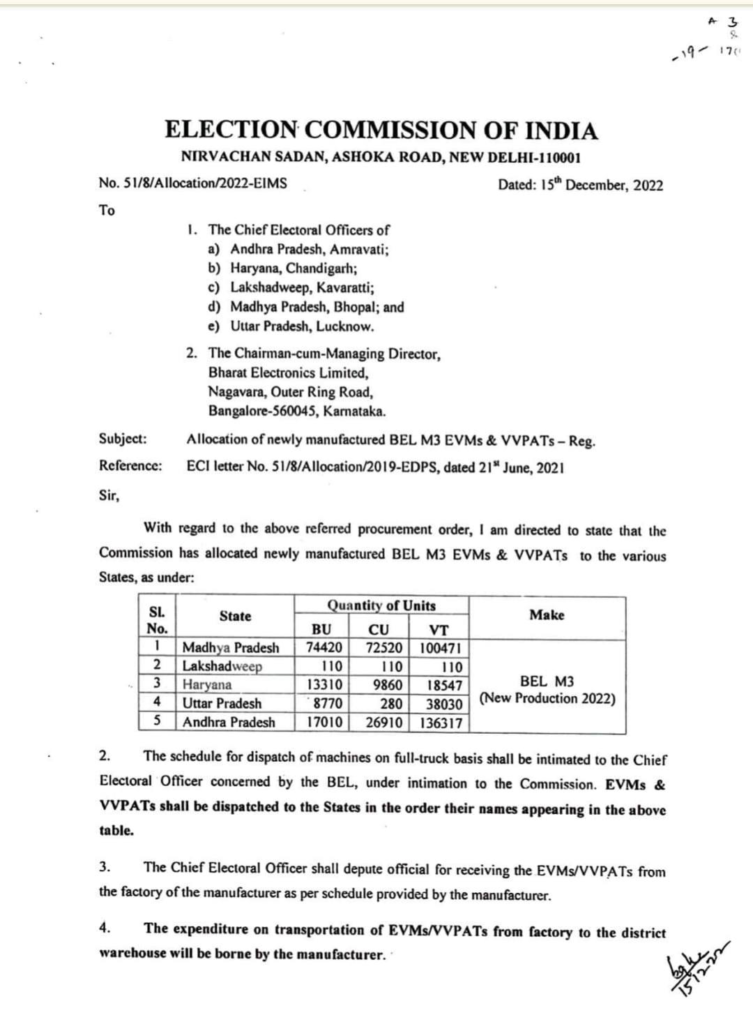✔️ ఇప్పటికే ఉన్న ఈవీఎంలకు అదనంగా 3770 కొత్త కంట్రోల్ యూనిట్లు తెప్పించడం