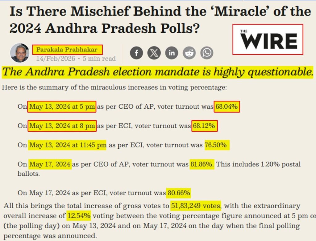 https://thewire.in/government/is-there-mischief-behind-the-miracle-of-the-2024-andhra-pradesh-polls/?fbclid=IwY2xjawP_7thleHRuA2FlbQIxMABicmlkETIyZUtEU25VNENiZ0FjYW8wc3J0YwZhcHBfaWQQMjIyMDM5MTc4ODIwMDg5MgABHm_kDSgq7MVC06li7XZjvBuXTnlgAYnoGuD84ZLgnhDSroj_jPTbIY1aDHJS_aem_YvWSlsDowqZk7UhlP4CFpQ