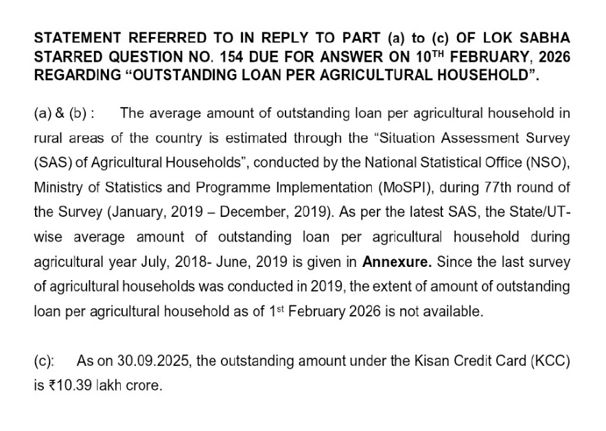 ఆంధ్రప్రదేశ్ వ్యవసాయం బలంగా ఉందన్న ప్రచారానికి భిన్నంగా, అధికారిక గణాంకాలు రైతులపై తీవ్రమైన అప్పుల భారాన్ని బయటపెట్టాయి. లోక్సభలో ఇచ్చిన లిఖితపూర్వక సమాధానం ప్రకారం, దేశంలోనే అత్యధిక రైతు అప్పులు ఉన్న రాష్ట్రంగా ఏపీ నిలిచింది.