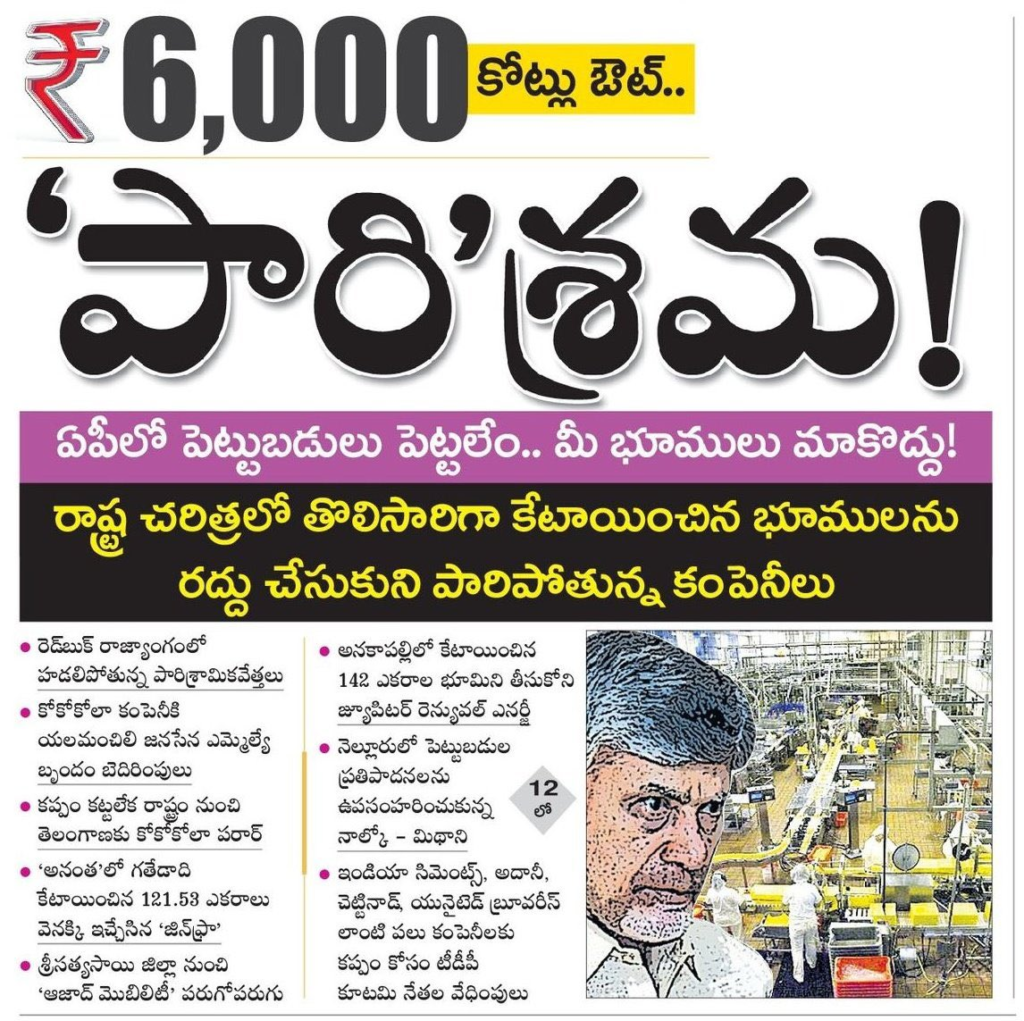 ఆంధ్రప్రదేశ్లో పరిశ్రమల అభివృద్ధి పేరుతో భారీ హామీలు వినిపిస్తున్నప్పటికీ, నేలమీద పరిస్థితి పూర్తిగా భిన్నంగా ఉందని తాజా పరిణామాలు చెబుతున్నాయి. భూములు కేటాయించి అధికారిక అనుమతులు ఇచ్చిన తర్వాత కూడా పలు కంపెనీలు తమ ప్రాజెక్టులను రద్దు చేసుకుని రాష్ట్రాన్ని విడిచిపెడుతున్నాయి.