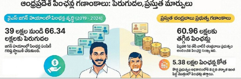 - ఈ గణాంకాల ఆధారంగా పింఛన్ వ్యవస్థలో సంఖ్యాపరమైన మార్పులు స్పష్టంగా కనిపిస్తున్నాయి. పూర్తి స్పష్టత కోసం ప్రభుత్వం సమగ్ర తాజా డేటాను ప్రజలకు అందుబాటులో ఉంచాల్సిన అవసరం ఉంది.