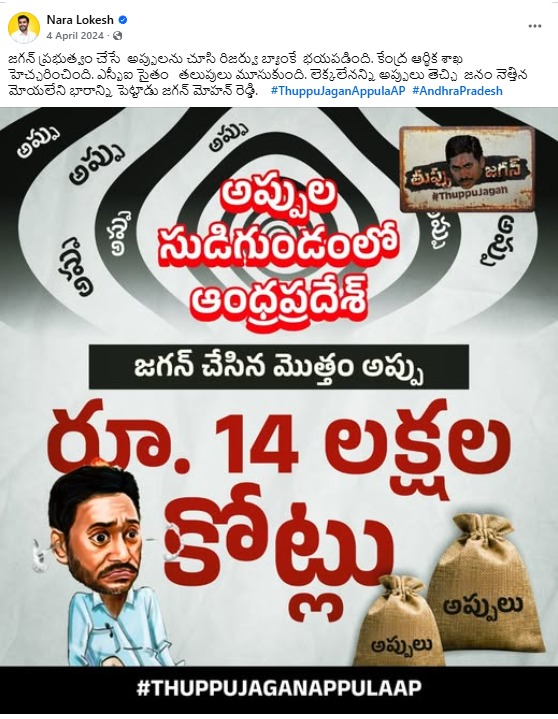 ఎన్నికల ముందు ఆంధ్రప్రదేశ్ రాష్ట్రంపై “14 లక్షల కోట్ల అప్పులు ఉన్నాయి” అంటూ కొన్ని రాజకీయ పార్టీలు తీవ్ర ప్రచారం చేశాయి. ఈ ఆరోపణలు అప్పట్లో పెద్ద రాజకీయ చర్చకు దారితీశాయి.