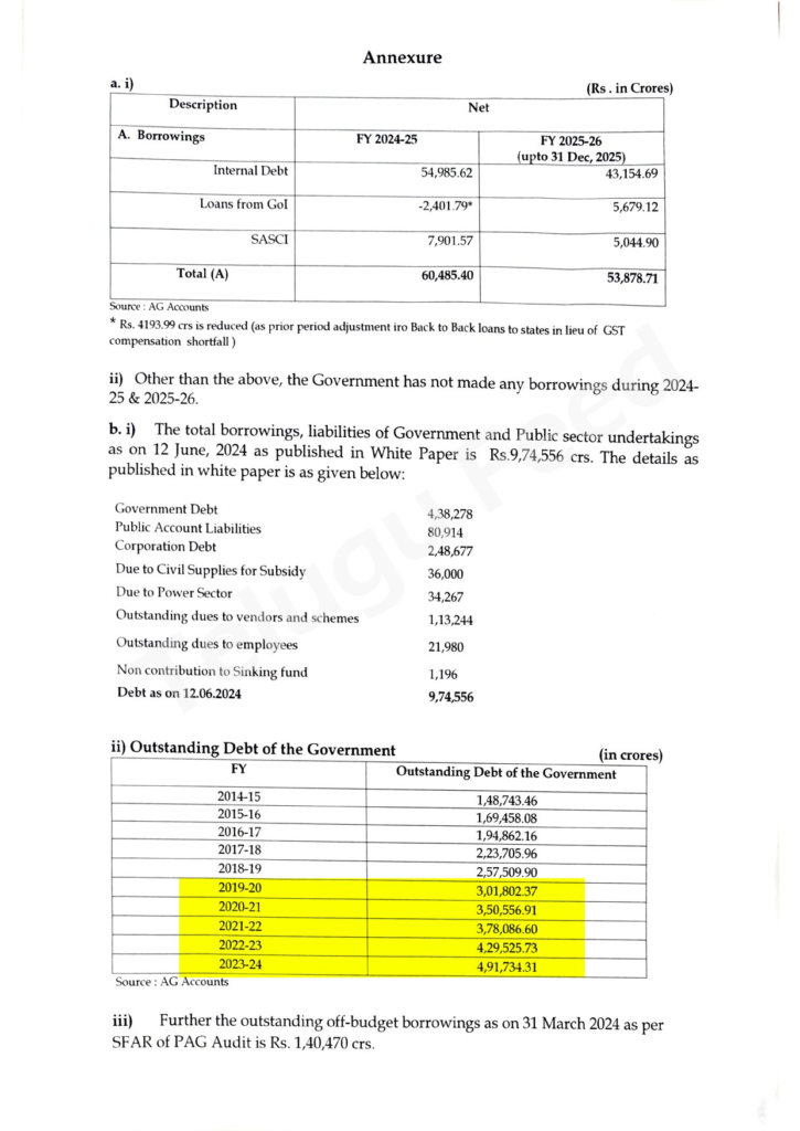 మండలిలో వెల్లడైన అప్పుల అసలు లెక్కలు