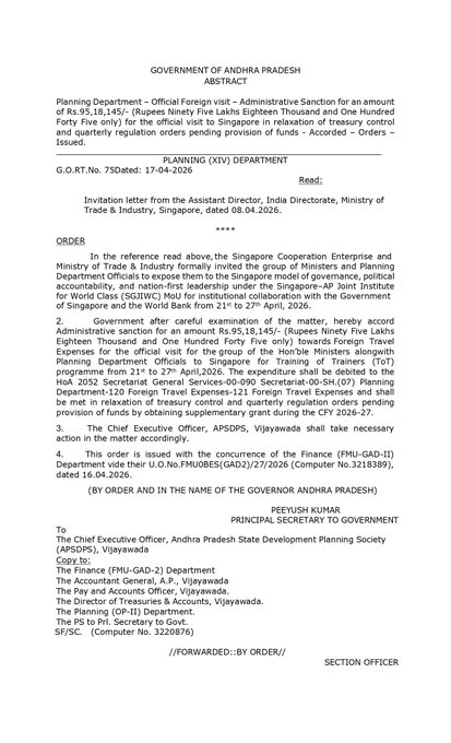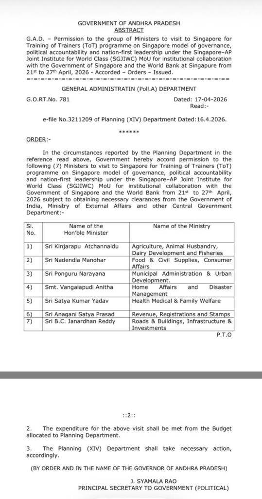 ఒకవైపు ఖజానా ఖాళీ అని ప్రభుత్వం చెబుతుంది… మరోవైపు అదే ప్రభుత్వం ₹95 లక్షలతో సింగపూర్ టూర్కు జీవో జారీ చేస్తుంది.