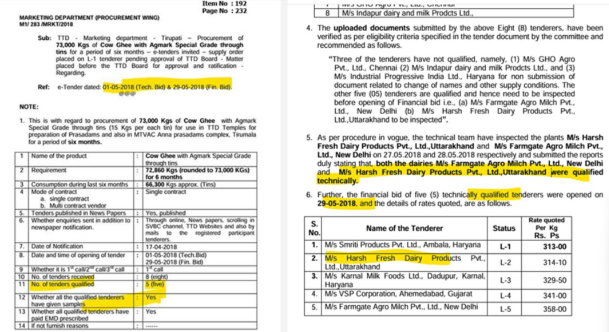 కల్తీ నెయ్యి ట్యాంకర్లను తిరస్కరించారు.