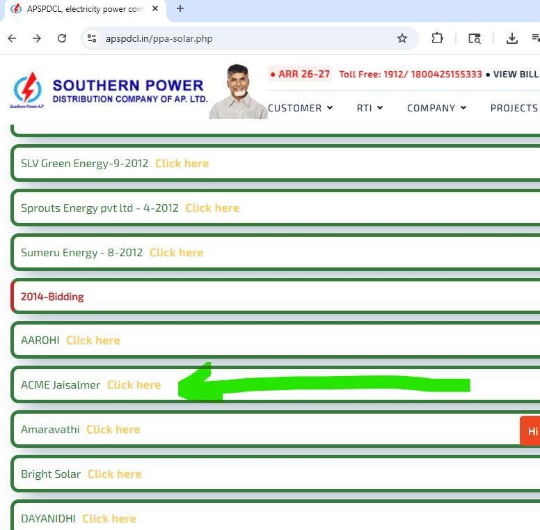 మరిన్ని వివరాల కోసం స్క్రీన్షాట్లను చూడండి లేదా https://apspdcl.in/ppa-solar.php వెబ్సైట్కి వెళ్లి ACME Jaisalmer ఒప్పందాన్ని డౌన్లోడ్ చేసుకోండి.