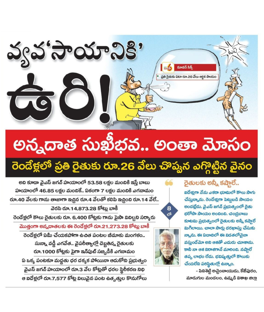 | రెండేళ్లలో ఇవ్వాల్సిన రైతు సాయం | రూ.21,273.28 కోట్లు |