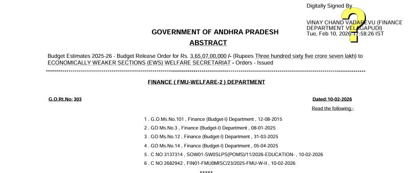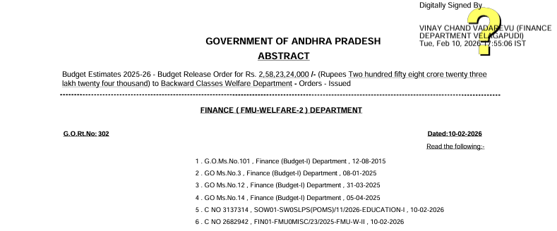 - విడుదల చేసినది కేవలం బడ్జెట్ ఆర్డర్ మాత్రమే