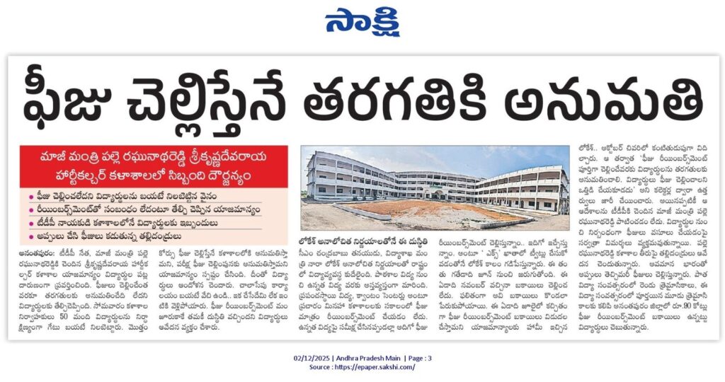 - ఫీజులు చెల్లించని కారణంగా కొంతమంది విద్యార్థులను కాలేజీ యాజమాన్యాలు బయటే నిలిపిన ఘటనలు వెలుగులోకి వస్తున్నాయి.