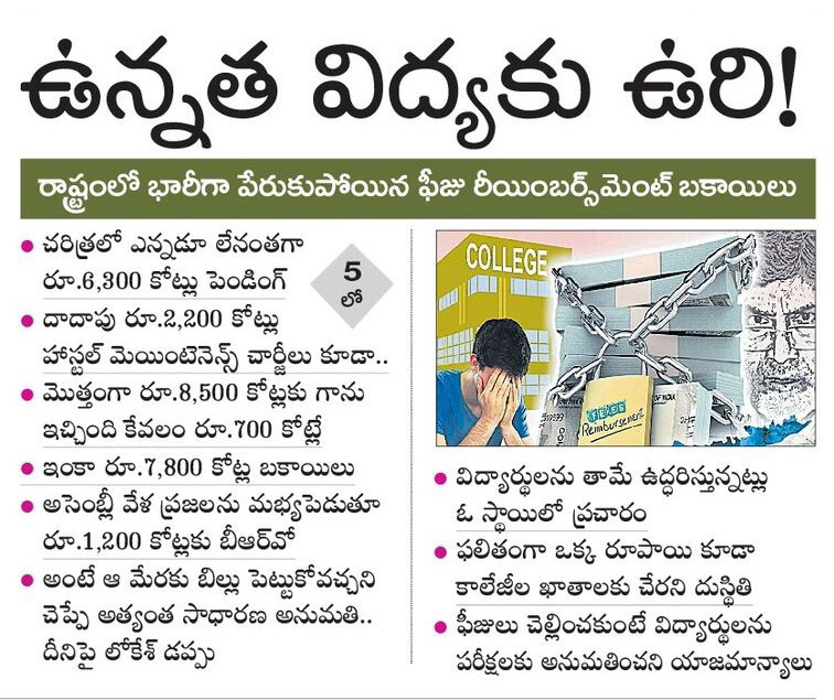| బకాయిల సమస్య లేదని అధికారిక ప్రకటనలు | ఫీజు రీయింబర్స్మెంట్లో దాదాపు రూ.5,600 కోట్లు బకాయిలు ఉన్నాయి |
