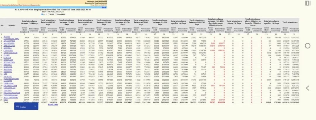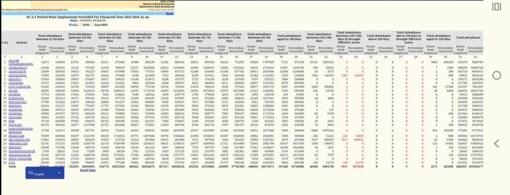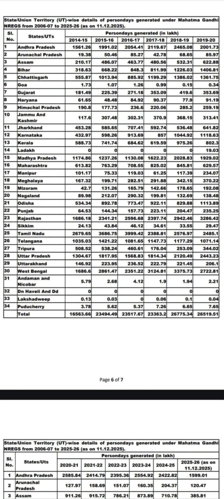 - 2024–25లో 24.22 కోట్ల పని దినాలు ఉండగా, 2025–26లో భారీగా పడిపోయి 18.59 కోట్లకు చేరింది