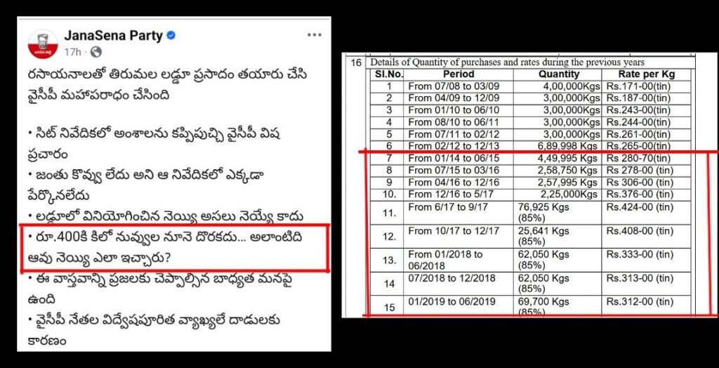 ఒకే నెయ్యి… ఒకే ధరల చరిత్ర… కానీ ప్రభుత్వాలు మారగానే ఆరోపణల స్వరూపం మారిపోవడమేనా? చంద్రబాబు ప్రభుత్వంలో కొనుగోలు చేసిన నెయ్యి “శుద్ధ ఆవు నెయ్యి”గా మారితే, జగన్ ప్రభుత్వంలో అదే నెయ్యి “జంతు కొవ్వు, పంది కొవ్వు, చేప నూనె”గా ఎలా మారిందన్న ప్రశ్నకు ఇప్పటికీ సమాధానం లేదు.