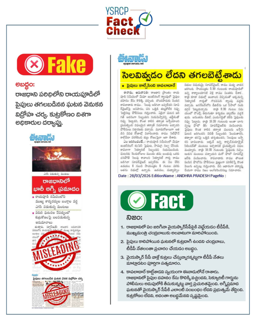 1. రాజధానిలో ఏం జరిగినా వైయస్సార్‌సీపీపై నెపం మోపే విధంగా టీడీపీ, అనుబంధ మీడియా వ్యవహరిస్తోంది.