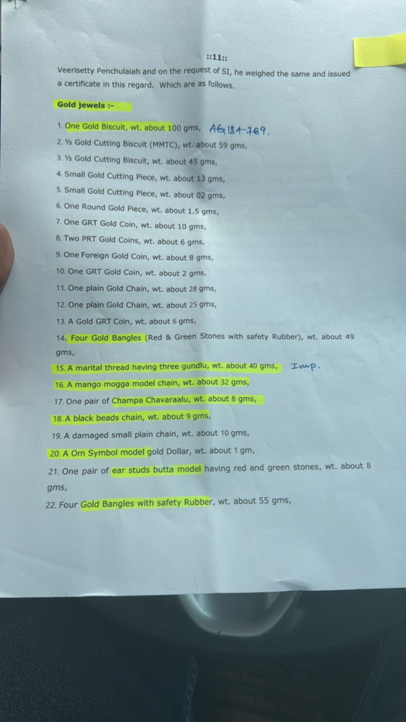 స్వామివారి హుండీలోని బంగారు ఆభరణాలు, బంగారు బిస్కెట్లు చోరీకి గురైన ఘటనలో —