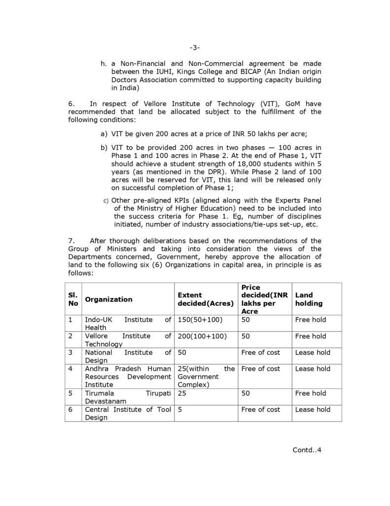 | ఆంధ్రప్రదేశ్ హ్యూమన్ రిసోర్స్ డెవలప్మెంట్ ఇన్స్టిట్యూట్ | 25 ఎకరాలు | ఉచితం |