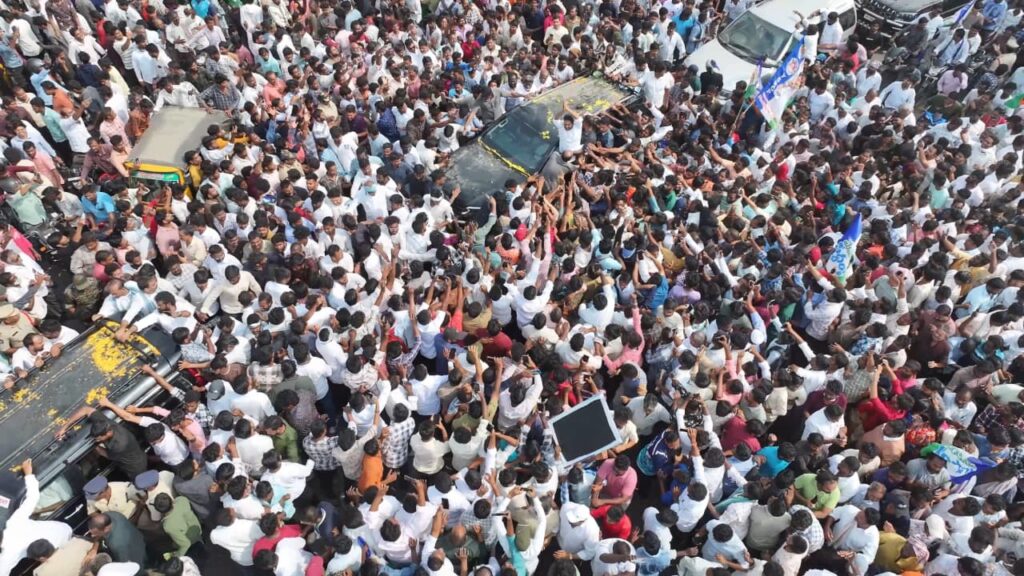 వైఎస్ జగన్ గారి గుంటూరు పర్యటన భారీ జనసందోహం మధ్య సాగింది. వైఎస్సార్ సీపీ కార్యకర్తలు, అభిమానులు పెద్ద ఎత్తున హాజరై సంఘీభావం తెలిపారు. ఈ పర్యటన రాజకీయంగా కీలక మలుపుగా మారింది.