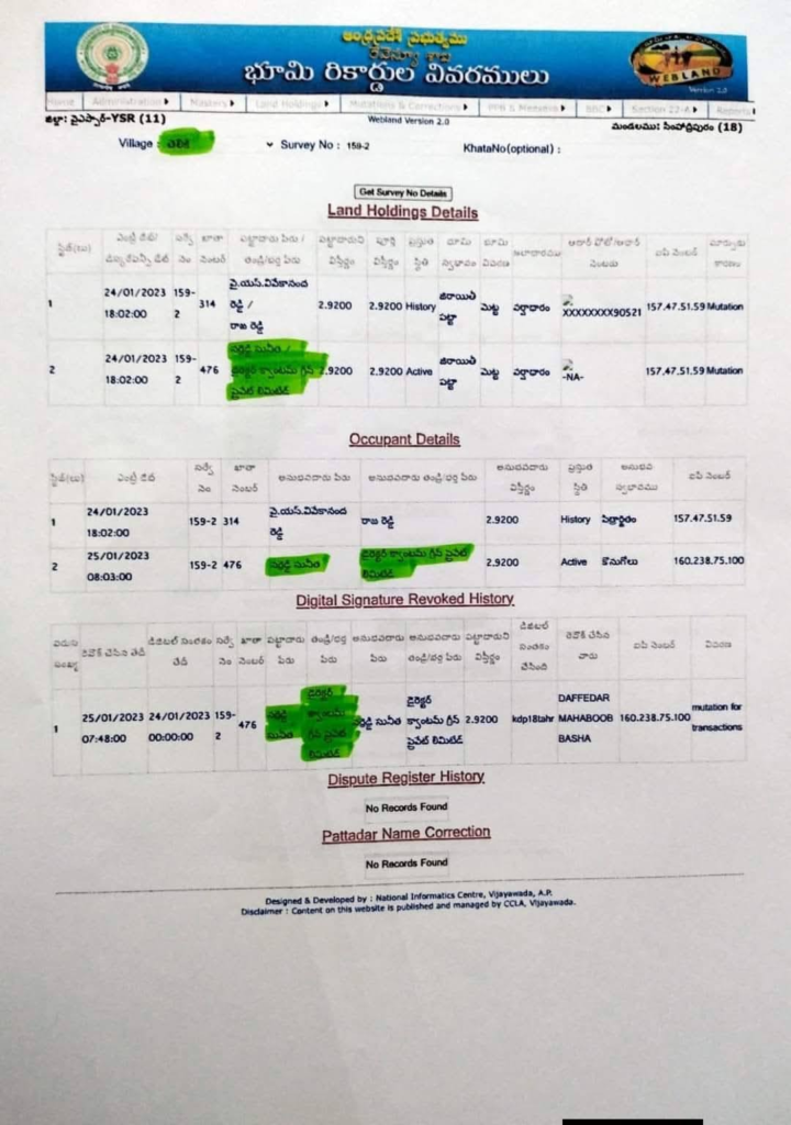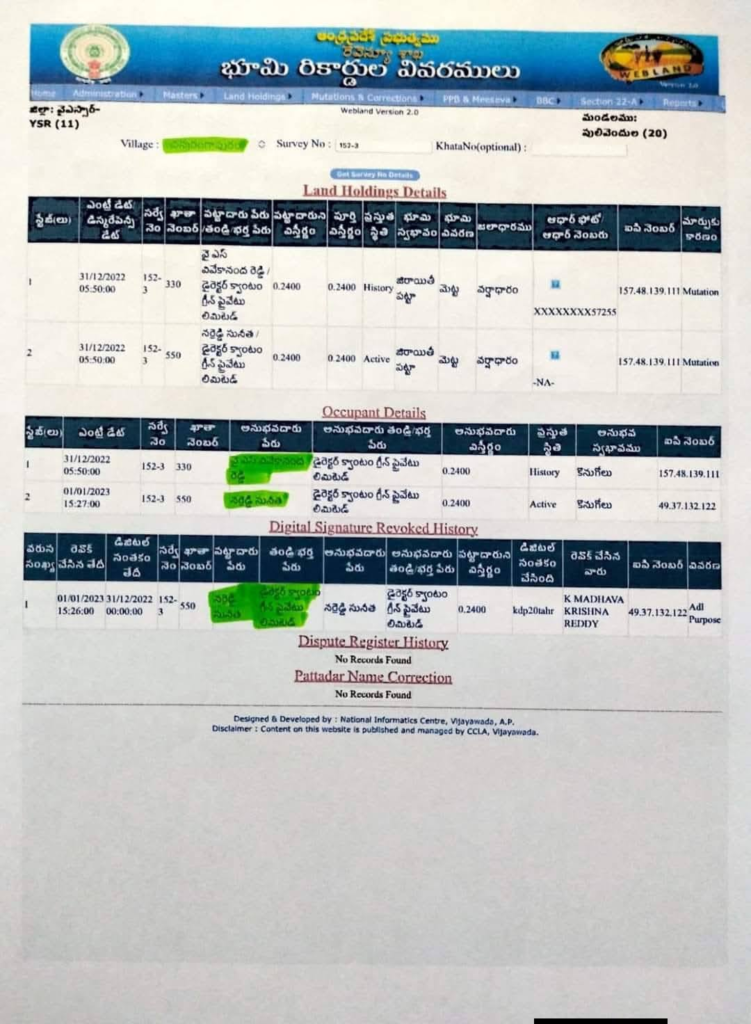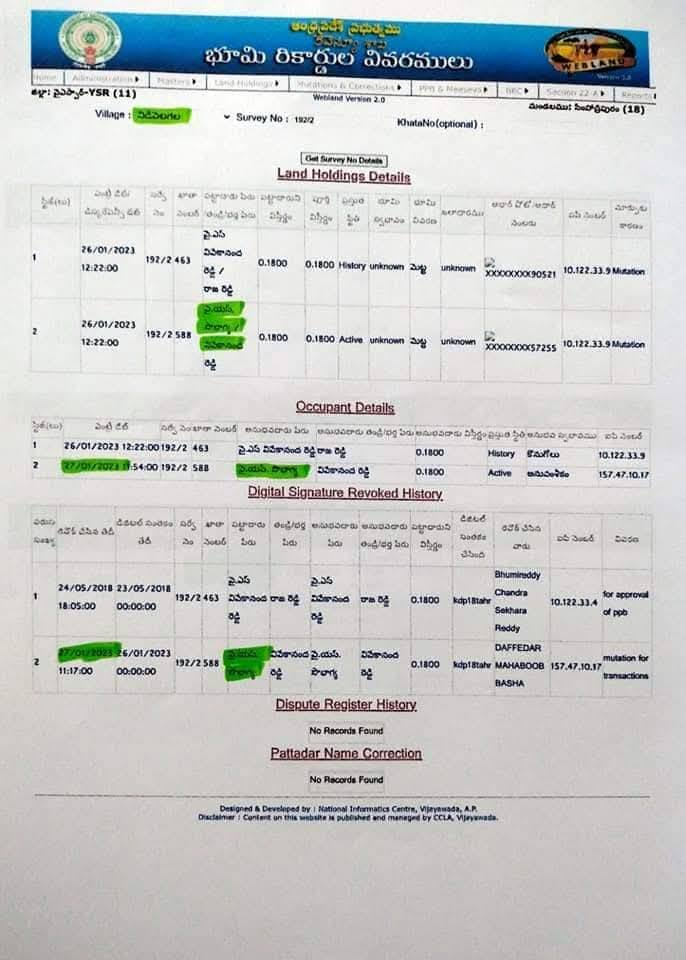 ఇక ప్రభుత్వ రిజిస్ట్రేషన్ డాక్యుమెంట్ల ప్రకారం, 2026 జనవరిలో వివేకా పేరిట ఉన్న సుమారు 89.83 ఎకరాల భూమి ఆయన భార్య మరియు కుమార్తె సునీత పేర్లకు బదిలీ అయినట్లు తెలుస్తోంది. ఇందులో ఎక్కువ భాగం సునీత పేరుమీదే నమోదైందని సమాచారం.