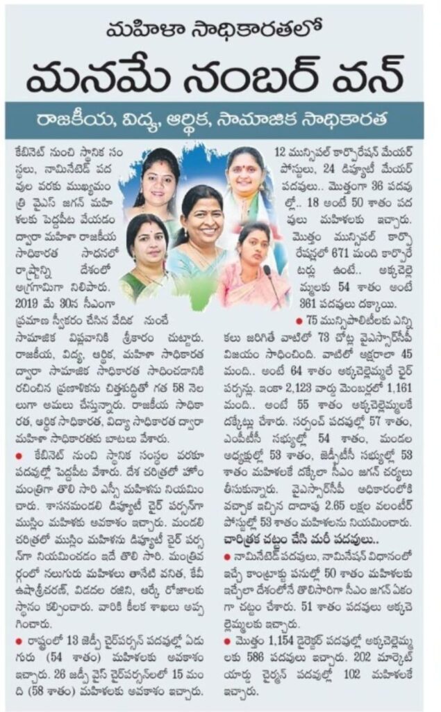 మహిళల సాధికారతలో ఆంధ్రప్రదేశ్ – మనమే నంబర్ వన్