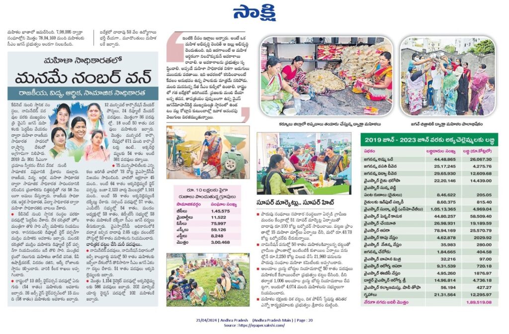 జగన్ ప్రభుత్వం మహిళలను ఆర్థికంగా బలపరచడంలో కీలక పాత్ర పోషించింది.