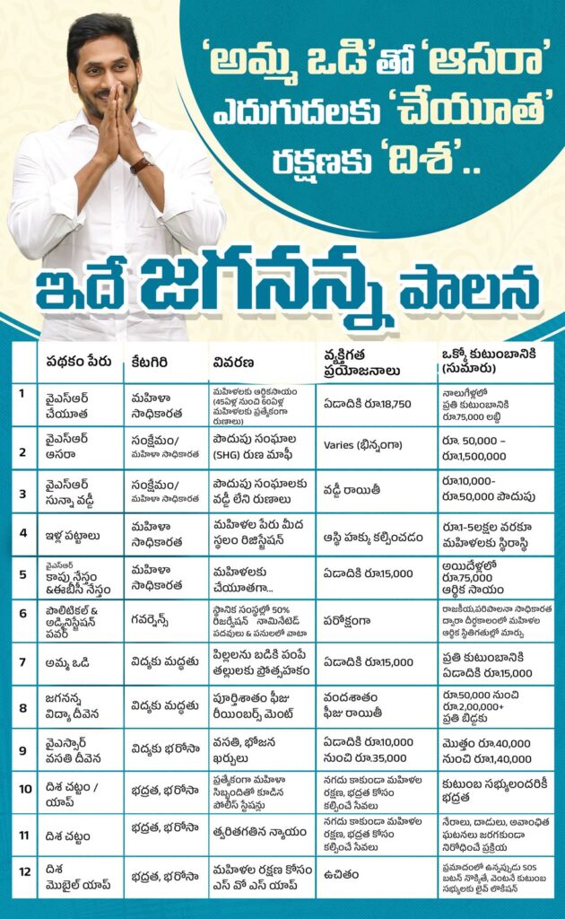 జగన్ ప్రభుత్వం మహిళల కోసం అనేక సంక్షేమ పథకాలను అమలు చేసింది.